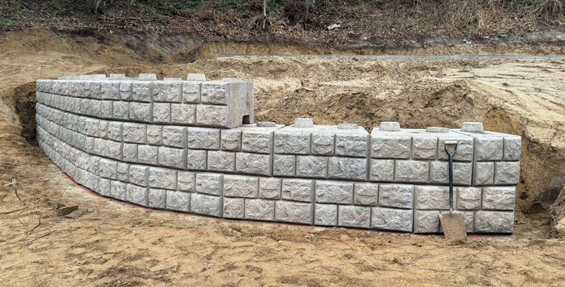 Our Retainer-Rock® system is a precast concrete interlocking retaining wall solution designed for: